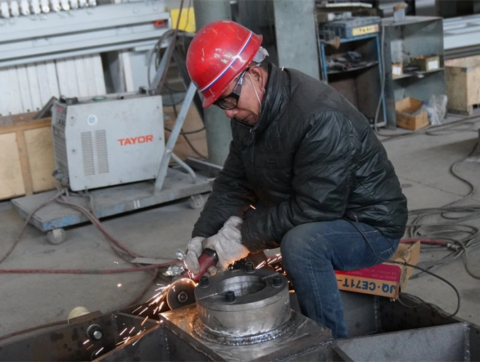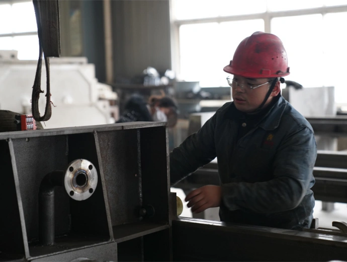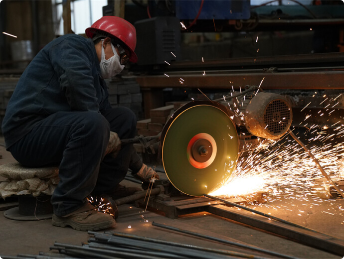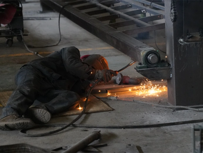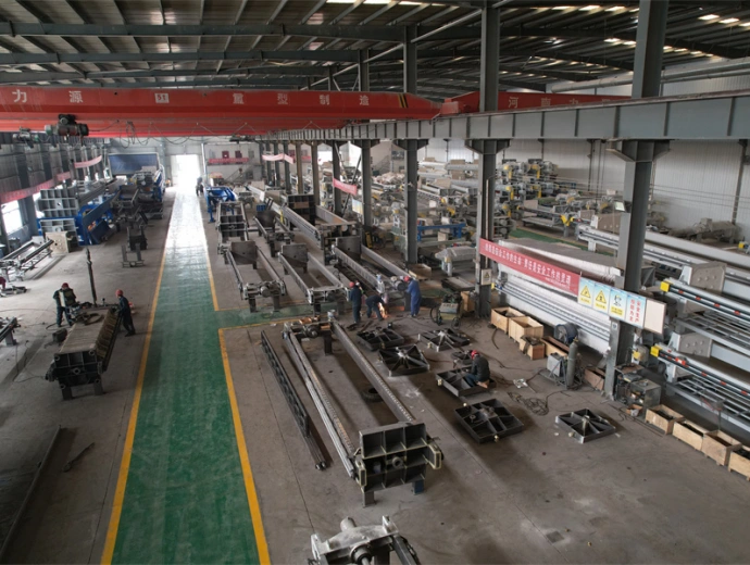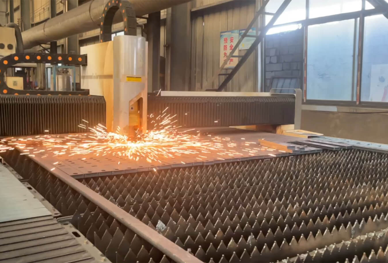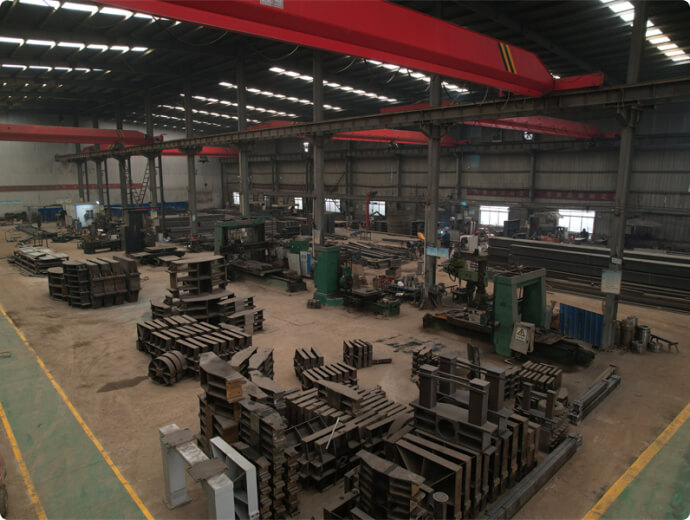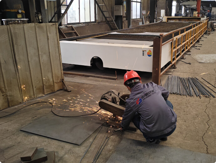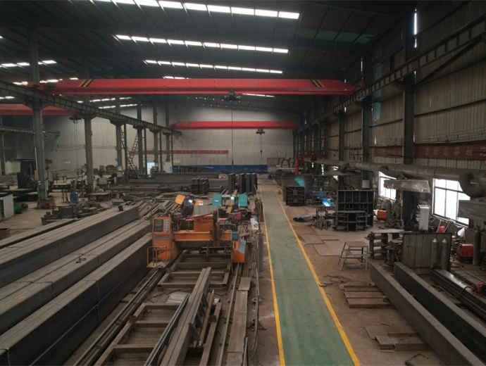 Q345B low-alloy steel (tensile strength ≥ 470 MPa) is used, formed through CNC plasma cutting (accuracy ±0.5 mm) and robot welding. Frames undergo stress relief annealing at 850°C and are then shot blasted to enhance paint adhesion.