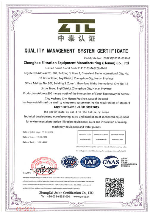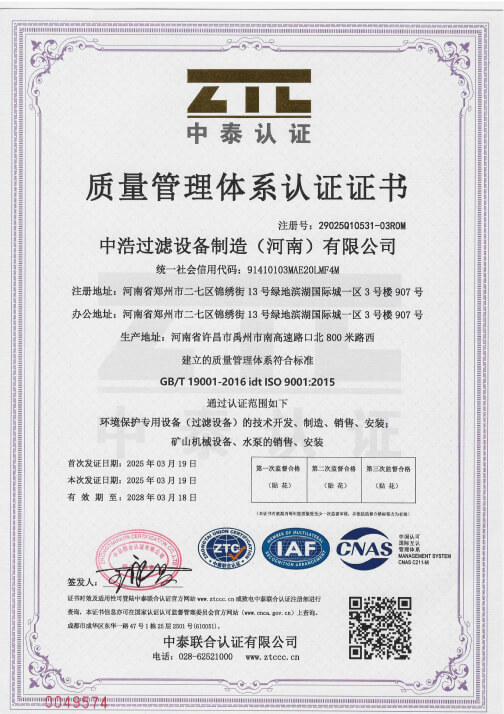 Each filter plate undergoes a 25MPa pressure test, with a flatness tolerance of ≤ 0.1mm/m², eliminating micro-leakage.