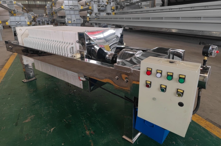 A food-grade filter press is specially designed for industries such as food, beverages, health products, and biopharmaceuticals. It operates on the same principle as a general filter press, but all parts in contact with the material are designed, manufactured, and surface-treated in compliance with food hygiene regulations. It forms a complete system of design, materials, manufacturing, and certification that meets food safety standards.