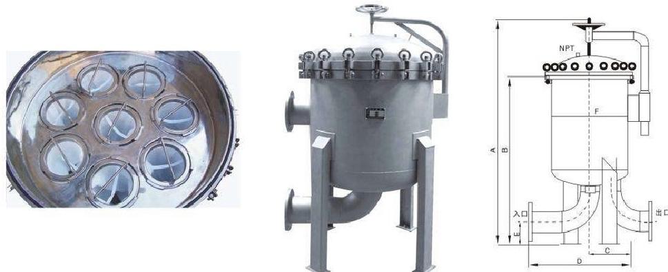 | Model | Filter Bag Size Number | Number of Filter Bags | Filtration Area | Inlet/Outlet Diameter | Working pressure | Maximum Flow Rate (with viscosity = 1 cP) |